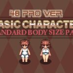 本素材は48proシリーズの基本体型に基づいて描かれたNPCキャラクターパックであり、NPC形式の6フレームアニメーションを採用しています。基本サイズは48×96ピクセルで、RPGMakerMV/MZで使用可能な48ピクセル高さのモジュール形式に対応しています。キャラクターパックには、全キャラクターで4種類の体型と28着の衣装が含まれています。また、一部のパーツには差分モードが適用されており、髪型は前面・後面・頭・帽子・胴体に分かれています。女性キャラクターに関しては、3種類のバストスタイルおよびクリームアニメーションが用意されており、組み合わせは自由に可能です。