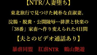 【NTR/人妻堕ち】東北旅行で見つけた純朴な貞淑妻。浣腸・脱糞・公開陵○… 排泄と快楽の「38番」家畜へ作り変えられた4日間【夫とのビデオ通...