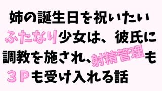 姉の誕生日を祝いたいふたなり少女は、彼氏に調教を施され、射精管理も3Pも受け入れるサークル: UnderMoonサークルHP: 発売日: 2...